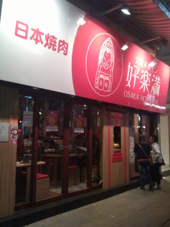 想試吃的「豚王」關了門,看到對面「好樂滿」,滿店小巧精緻的烤爐,就吸引進去了。這天男助手的妹妹剛抵大阪,原來「好樂滿」的發源地也在大阪,有那麼巧嗎?但我實在喜歡那個只像4疊A4紙大小的烤爐,每對座位各有個銀色圓筒抽油煙機,大紅的佈置,居酒屋風格。