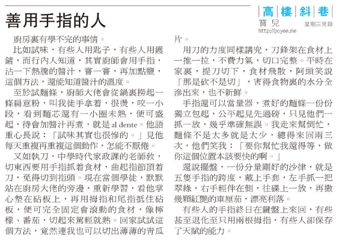 20130612pympcolumn 17.06.2013 / 寶兒 喜歡「手作文字」的話,記得鼓勵一下:更多Tweet 以電子郵件將連結傳送給朋友(在新視窗中開啟) 電子郵件 列印(在新視窗中開啟) 列印 喜歡 正在載入...