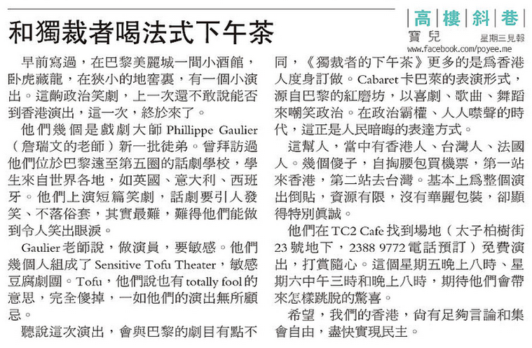 20141008pympcolumn 10.10.2014 / 寶兒 喜歡「手作文字」的話,記得鼓勵一下:更多Tweet 按一下即可以電子郵件傳送連結給朋友(在新視窗中開啟) 電子郵件 點這裡列印(在新視窗中開啟) 列印 喜歡 正在載入...