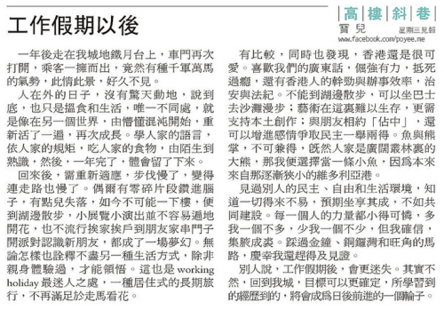 20141015pympcolumn 16.10.2014 / 寶兒 喜歡「手作文字」的話,記得鼓勵一下:更多Tweet 以電子郵件將連結傳送給朋友(在新視窗中開啟) 電子郵件 列印(在新視窗中開啟) 列印 喜歡 正在載入...