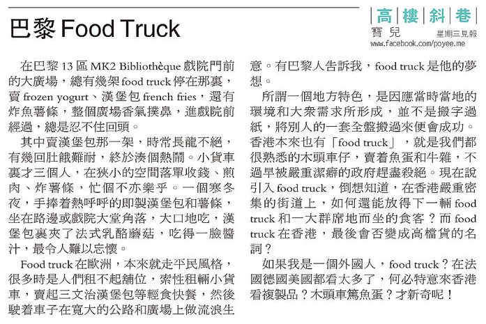 如果我是一個外國人,food truck?在法國德國美國都看太多了,何必特意來香港看複製品?木頭車篤魚蛋?才新奇呢!