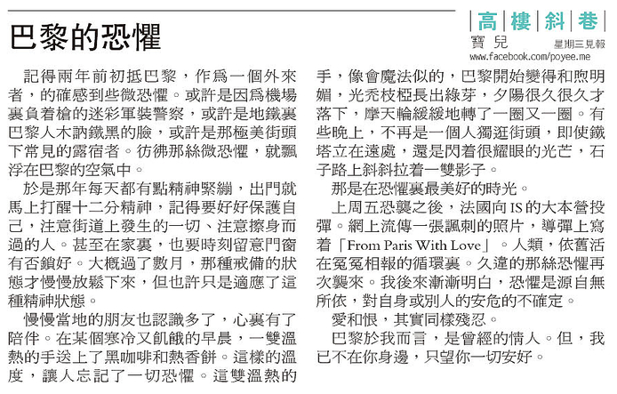 20151118poyeempcolumn 09.12.2015 / 寶兒 喜歡「手作文字」的話,記得鼓勵一下:更多Tweet 按一下即可以電子郵件傳送連結給朋友(在新視窗中開啟) 電子郵件 點這裡列印(在新視窗中開啟) 列印 喜歡 正在載入...