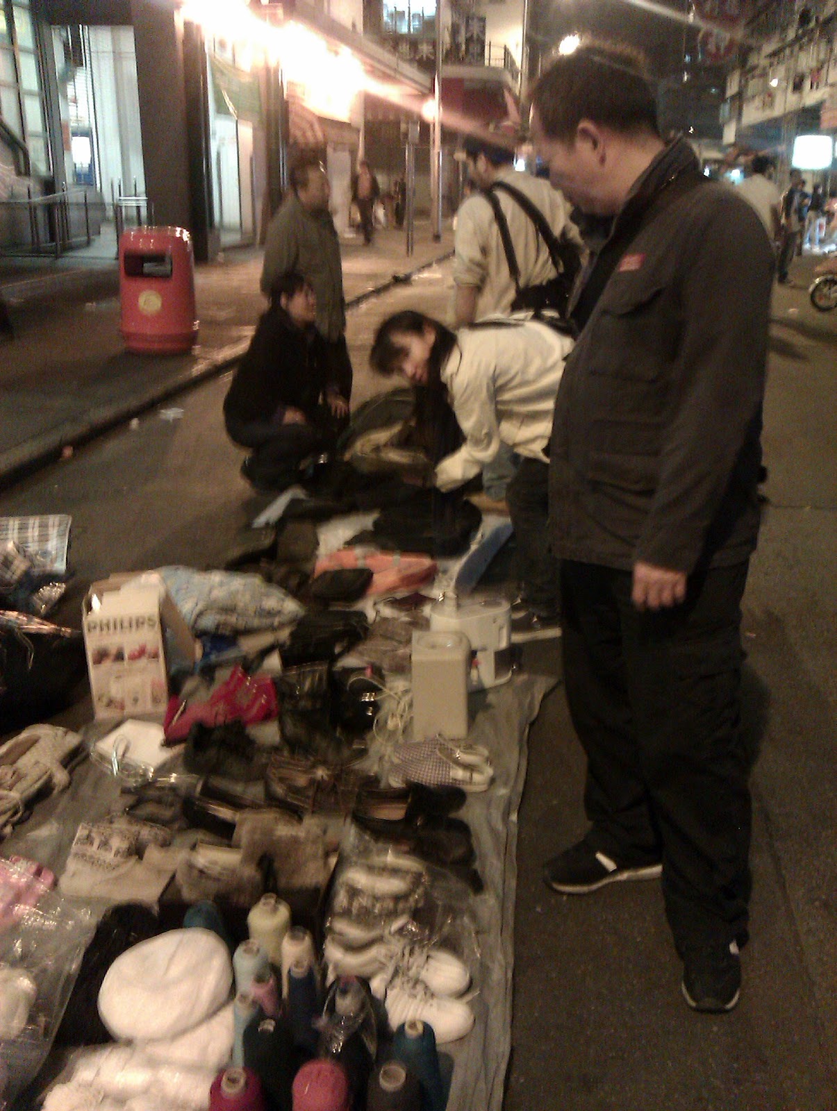 那晚還有另一位小丸子記者,拿著一大籃舊物,腼覥地放在街上,果真有人來檢收。「看啊!她在翻我的私隱啊!」那個簇新的粉紅色膠籃、膠盒盛著用了三 分一的洗衣粉、一樽新開封柔順劑……看着自己的東西放在地攤上賣,感覺應該很趣怪吧,滿有投入感的,真有點羡慕她,早知我也帶點什麼來賣。