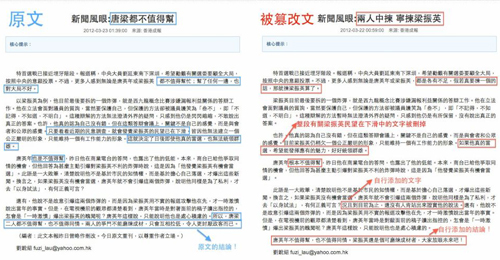 劉銳紹先生的專欄文章被竄改得面目全非,由「兩不支持」至「挺梁」,作者的言論自由被粗暴剝奪,亦暴露了報章立場。「為配合當日報章的報道,而將文章修改」總編輯的說法完全不合理。報導與專欄,前者是事實呈現,後者是意見表達,兩者應該獨立而處。即使將原文再刊一次,已然徒勞,遑論持平公正,實已出賣報紙公信力。